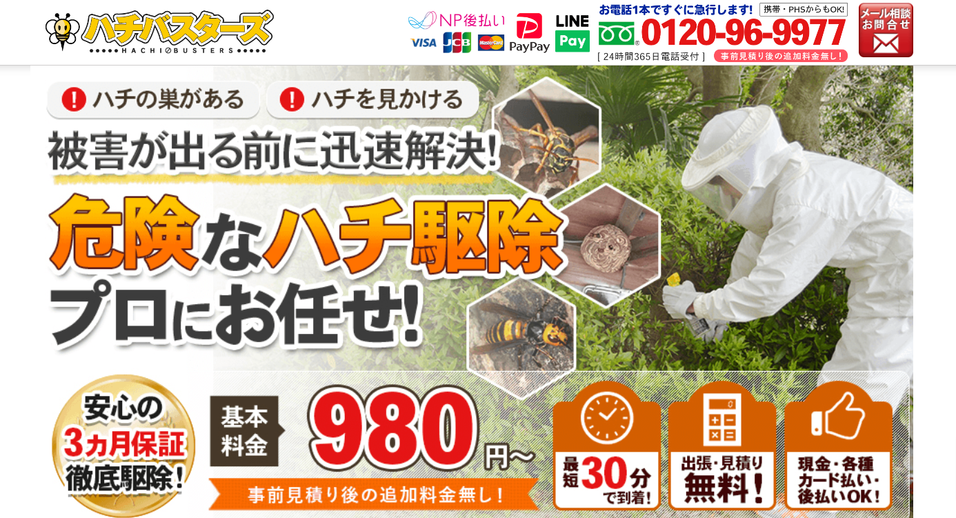最短5分で到着可能!危険なハチの巣をスピーディーに駆除!